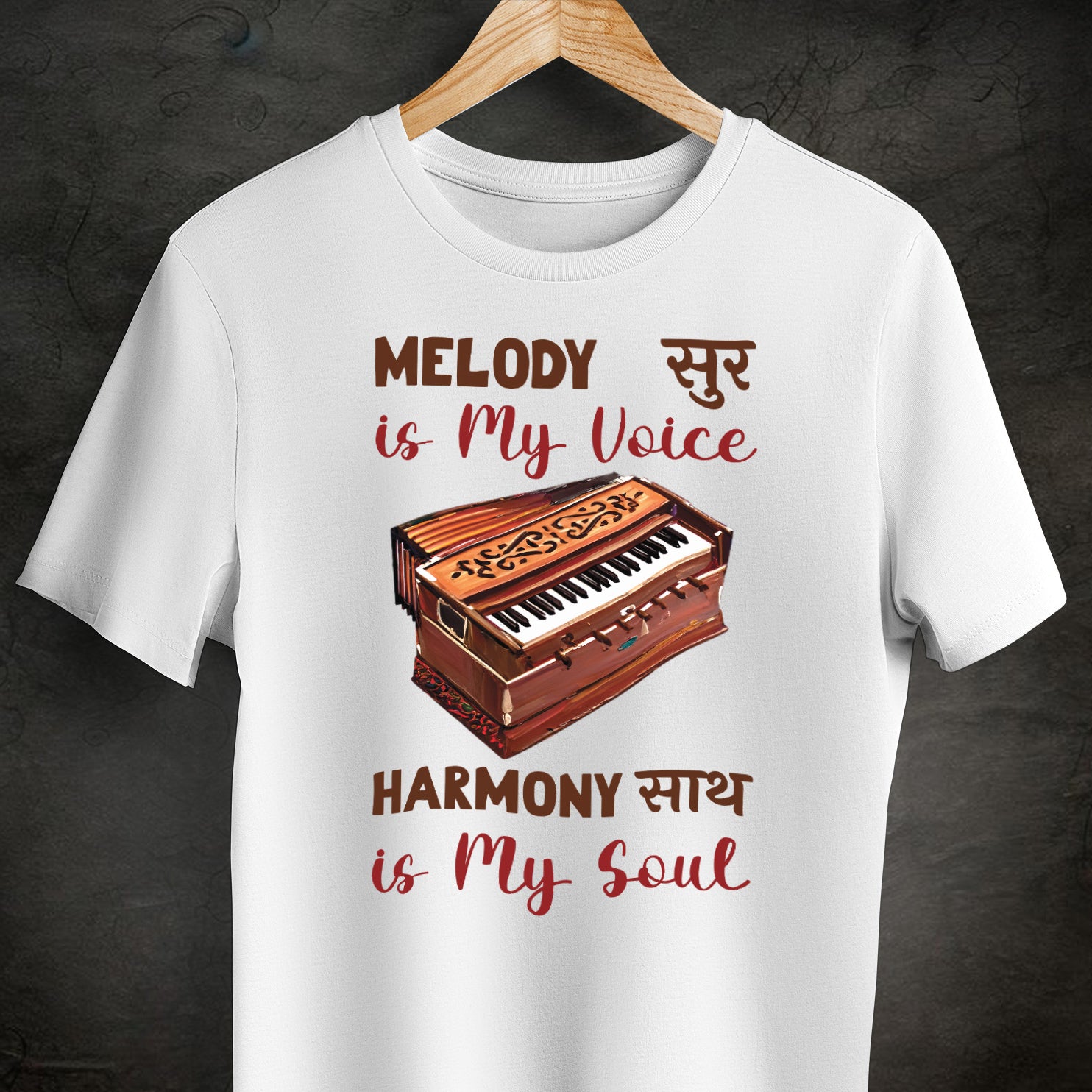 mbrace the essence of Indian classical music with our "Sur is My Voice, Saath is My Soul" unisex t-shirt. This design is perfect for music lovers who connect deeply with the melodic and harmonious beauty of traditional instruments. Whether you're a musician or someone who finds peace and joy in soulful melodies, this shirt is more than just an outfit—it's an expression of your passion for music.