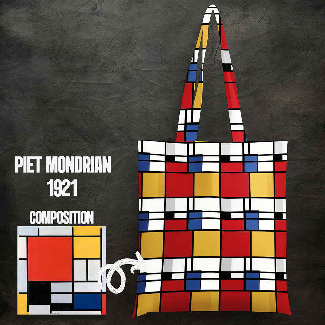 Piet Mondrian’s "Composition" Inspired Cotton Canvas Tote Bag – Modern Art Meets Everyday Functionality